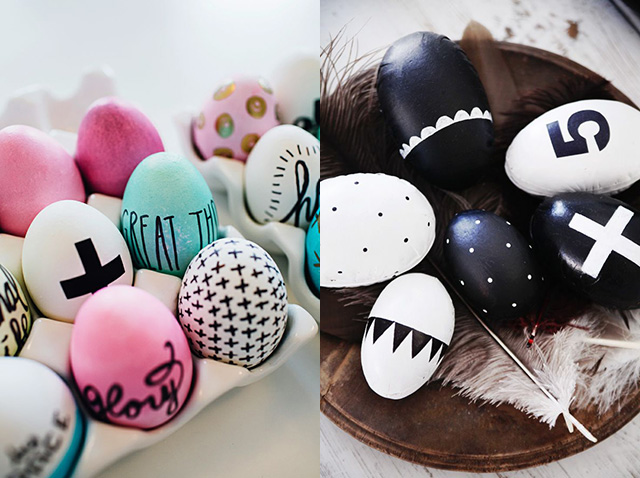 E come rinunciare alle uova decorate? Puoi provare con tante soluzioni diverse: glitterate, dipinte a motivi geometrici o con effetto black and white, decorate semplicemente con washi tape e pennarello indelebile… puoi sbizzarrirti con la fantasia, seguendo le dritte ad esempio di incredibleegg.